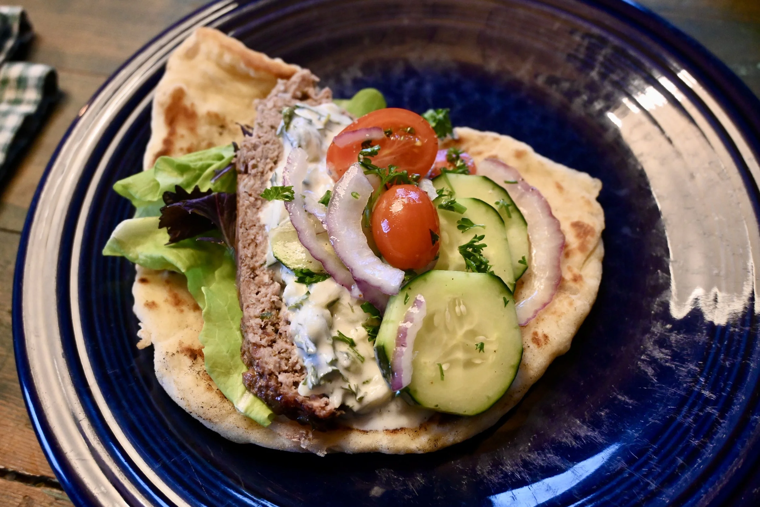 These are SOOO good. Going to give you the steps for our favorite homemade naan and the lamb meatloaf that we shaved off for our filling. Other great toppings are tzatziki, hummus, olives, and tomato/cucumber/red onion salad. Using fresh herbs such as dill, mint, parsley really make this meal pop.